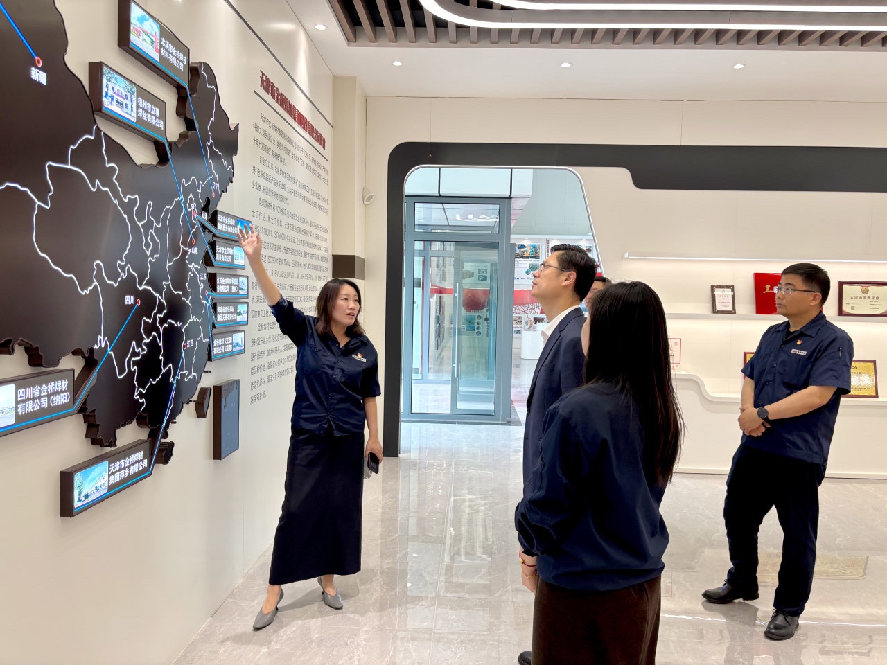 在科技公司展廳,殷俊一行詳細聽取了企業創始人侯立尊先生的創業史、侯老總對焊材行業做出的杰出貢獻和企業發展情況,并對侯老總的創業精神和為中國焊材事業做出的突出貢獻表示欽佩與稱贊。